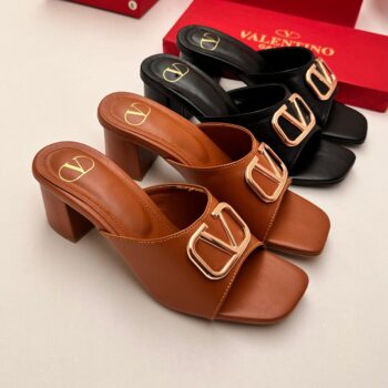 Diamond-Quilted Square Toe V-Hardware Slide Sandals