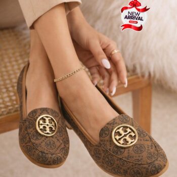 Elegant Pointed-Toe Slingback Flats – High-Shine Finish with Bold Geometric Hardware