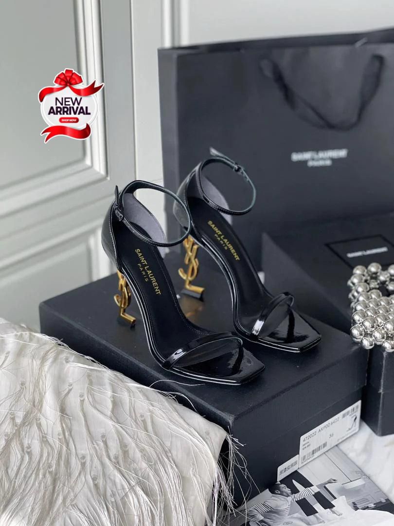 Elevate your footwear collection with our Architectural Monogram Heel Patent Leather Ankle Strap Sandals, a masterpiece of modern design and structural elegance. These sandals are crafted for those who view fashion as a form of art, combining a minimalist upper with a gravity-defying, sculptural heel that serves as a stunning focal point.
