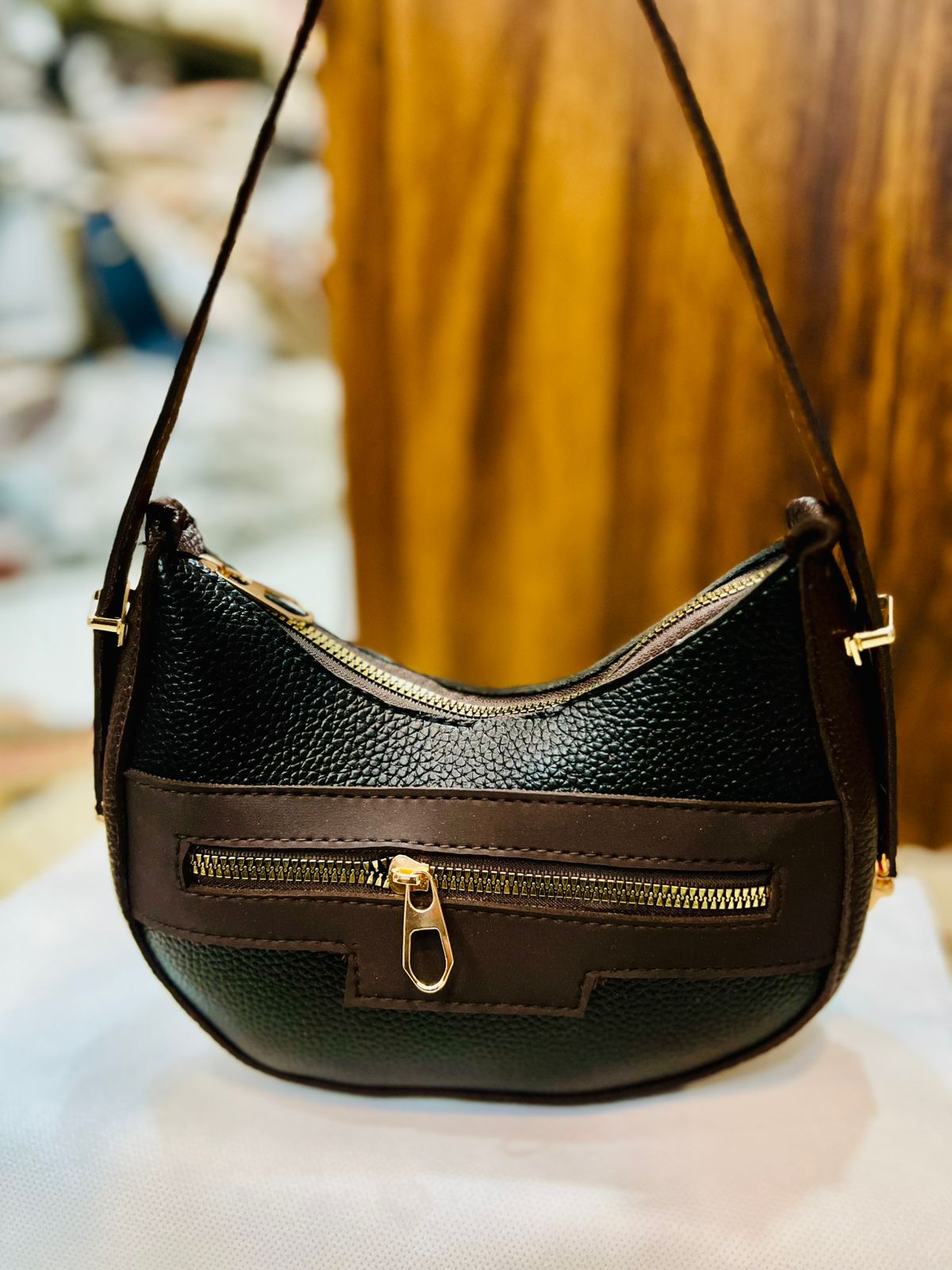 Elevate your daily look with this premium moon-shaped shoulder bag, featuring a trendy curved silhouette, an adjustable long belt, and a convenient front-style pocket for organized elegance.
