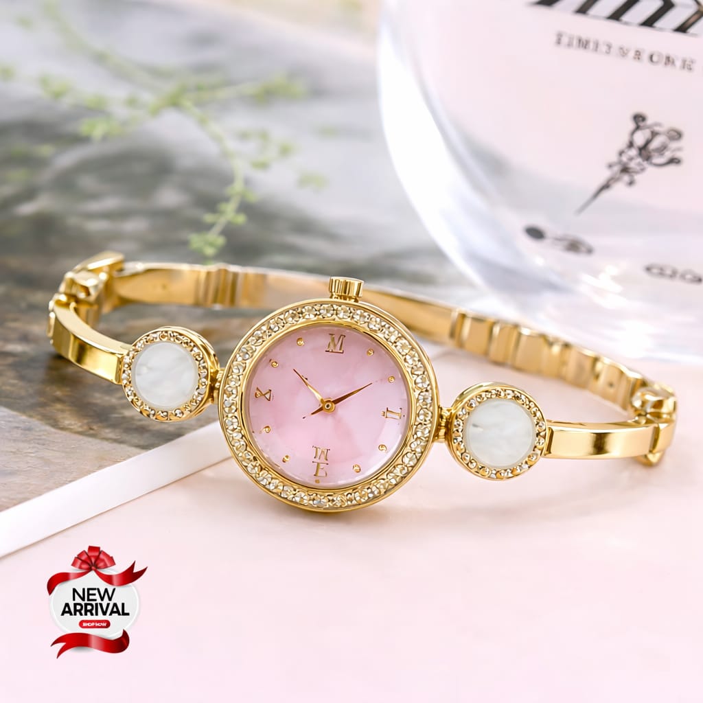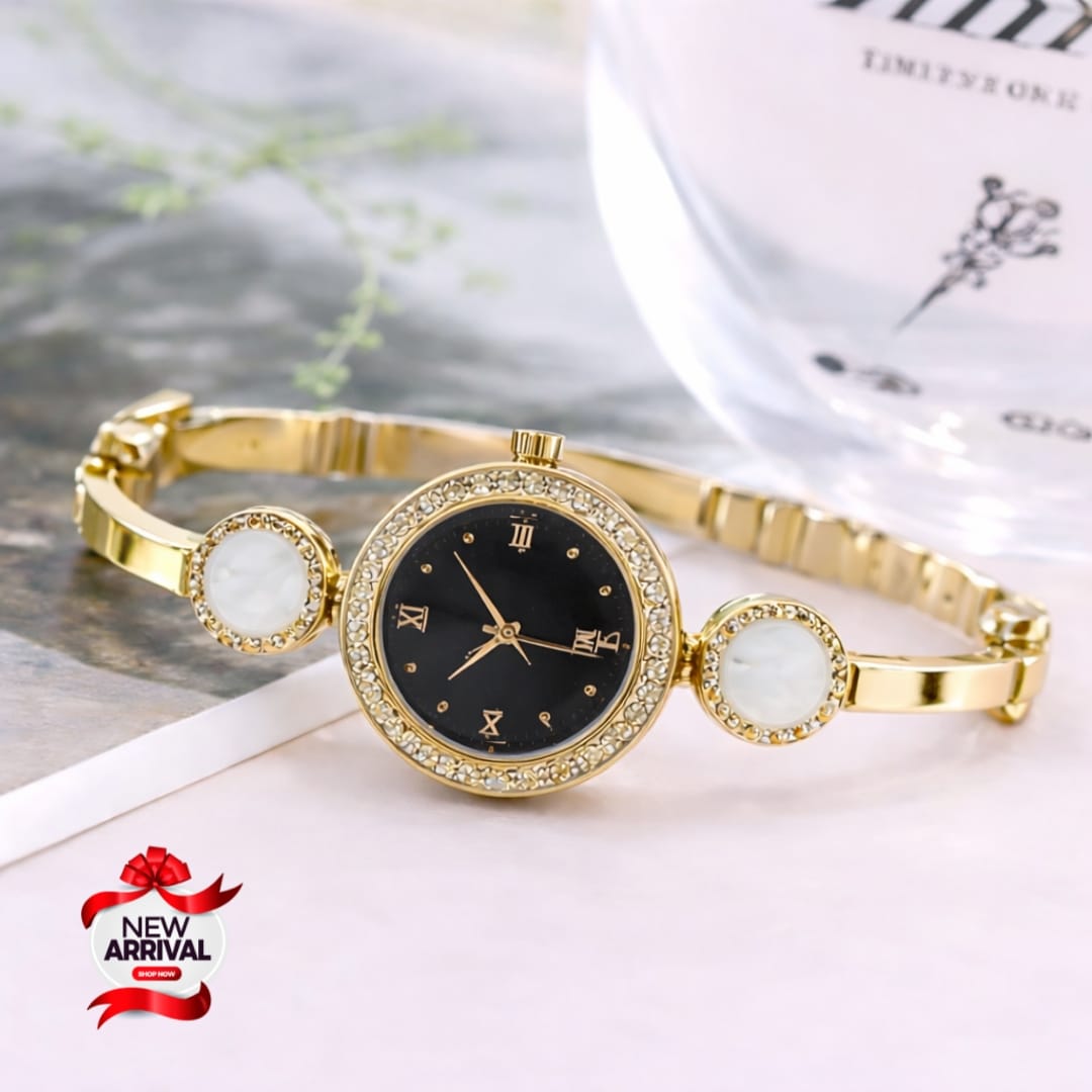 Discover the perfect harmony of timeless elegance and modern sophistication. This exquisite timepiece is designed for the woman who views her watch as more than just a tool for keeping time—it is a centerpiece of her personal style. Crafted with a polished gold-finish band, this watch radiates a warm, luxurious glow that complements any skin tone and adds an immediate touch of “quiet luxury” to your wardrobe.