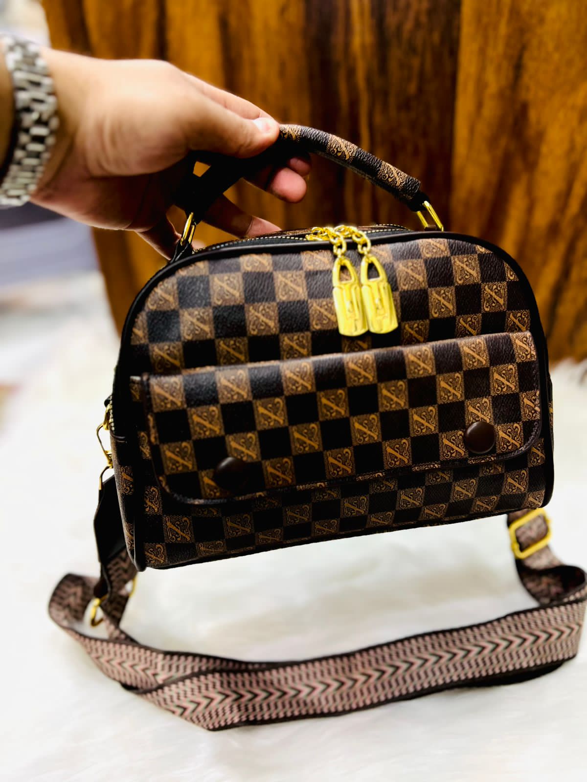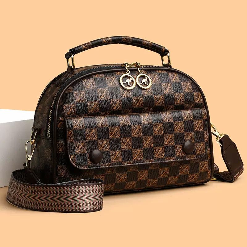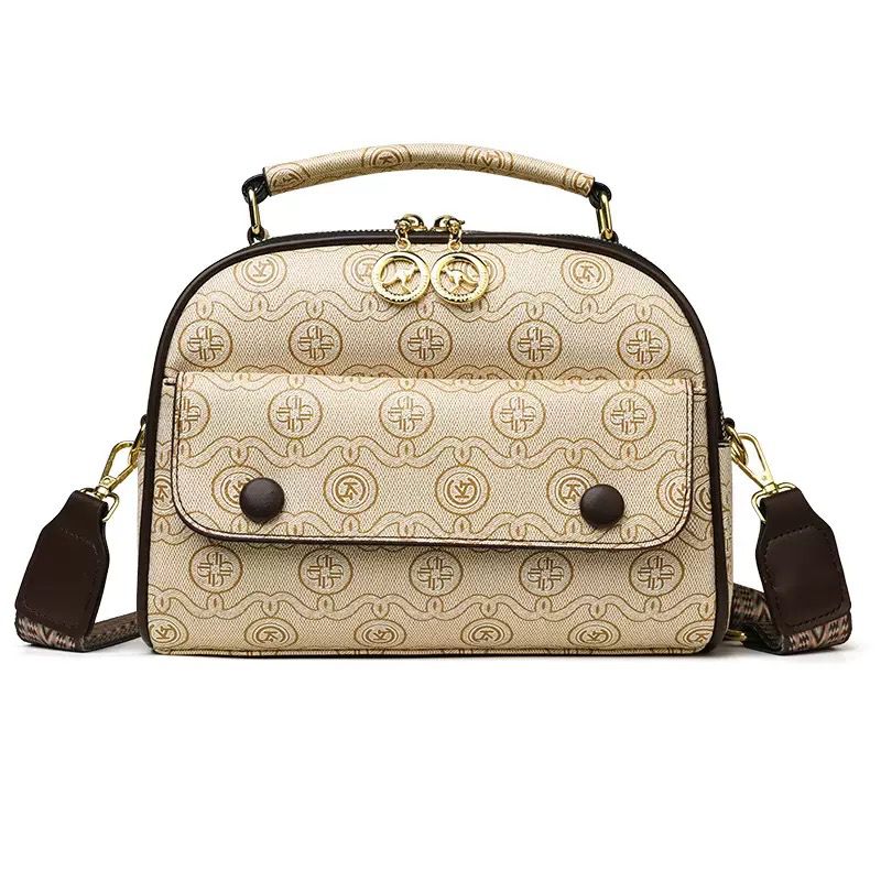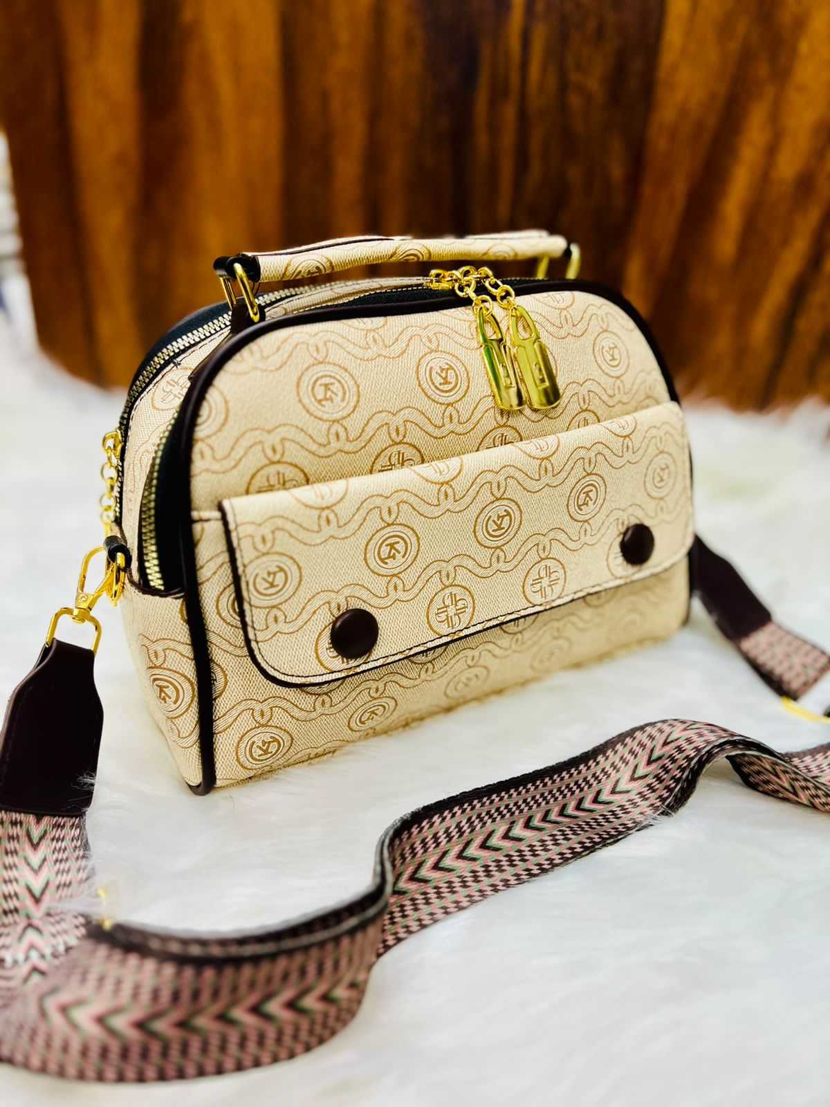 Elevate your daily ensemble with this sophisticated patterned handbag. Featuring a structured dome silhouette, premium gold-tone hardware, and a trendy wide chevron strap, it perfectly balances classic elegance with modern streetwear vibes.