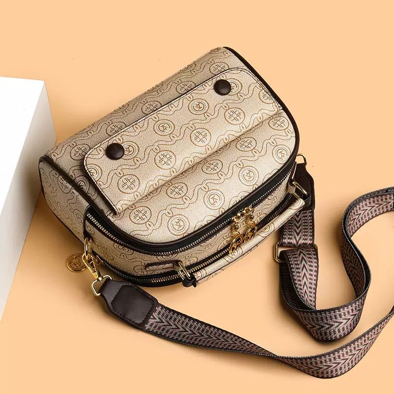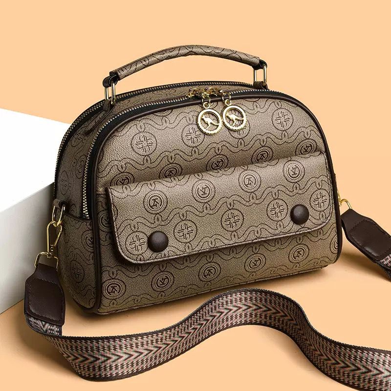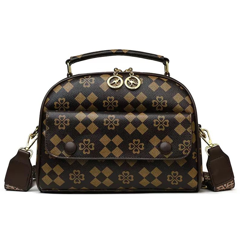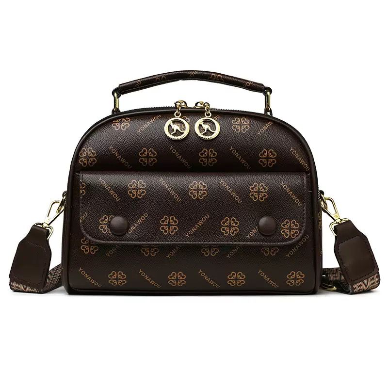 Elevate your daily ensemble with this sophisticated patterned handbag. Featuring a structured dome silhouette, premium gold-tone hardware, and a trendy wide chevron strap, it perfectly balances classic elegance with modern streetwear vibes.