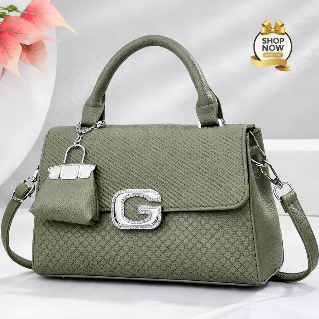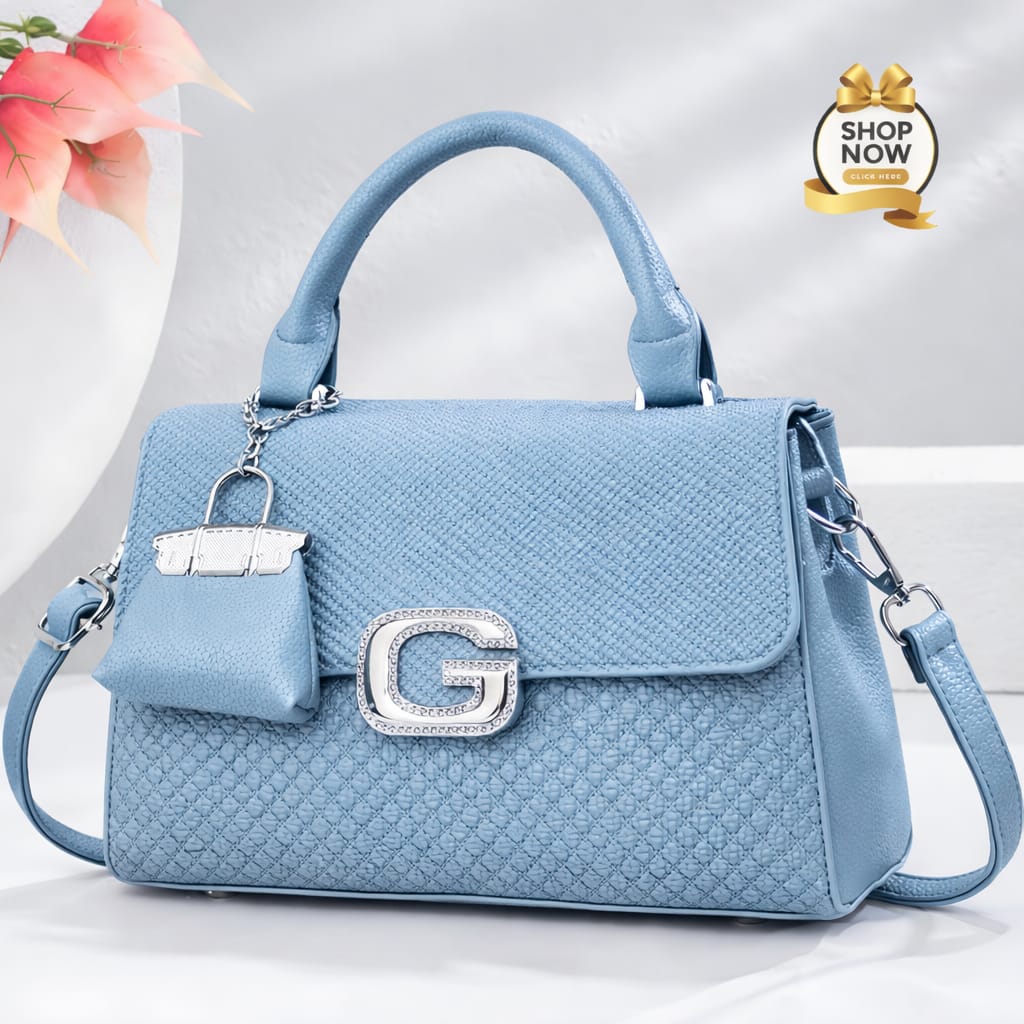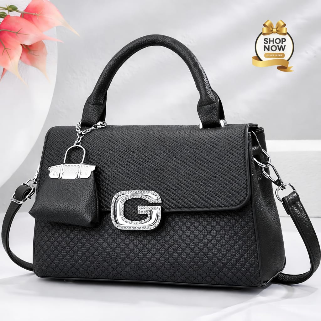 The centerpiece of this design is the dazzling crystal-studded ‘G’ buckle, which provides a luxurious focal point against the matte finish of the premium synthetic leather. Every detail has been carefully considered, from the reinforced top handle that offers a comfortable grip to the high-quality silver-tone hardware that adds a touch of cool-toned brilliance.