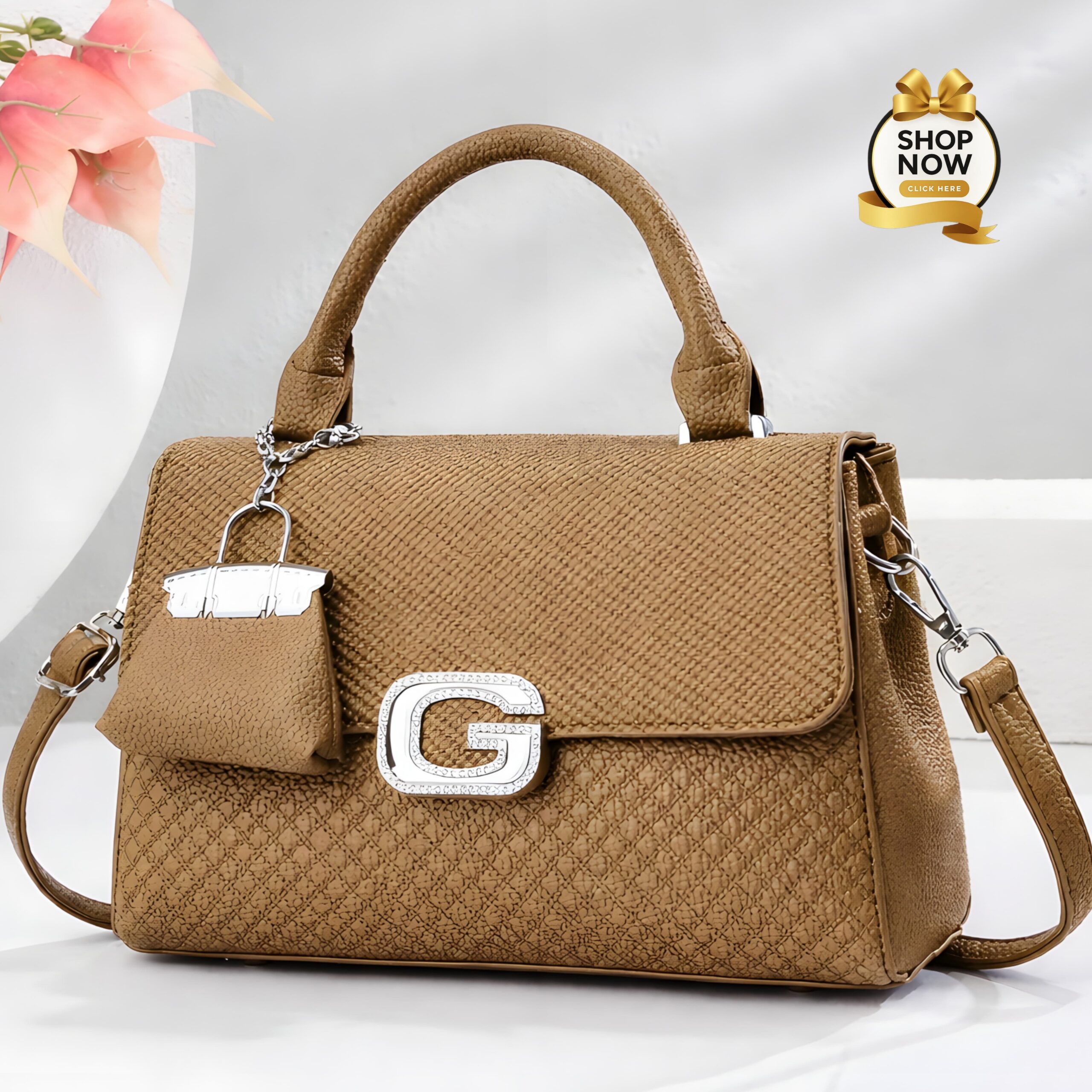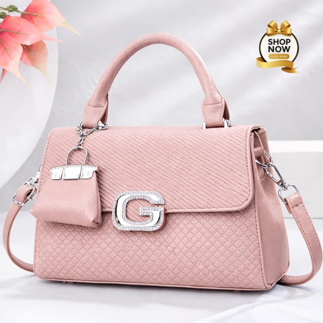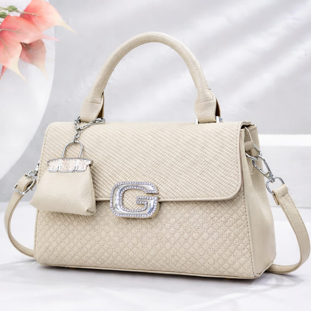 Elegant Textured Top-Handle Satchel with Crystal ‘G’ Hardware and Matching Coin Purse