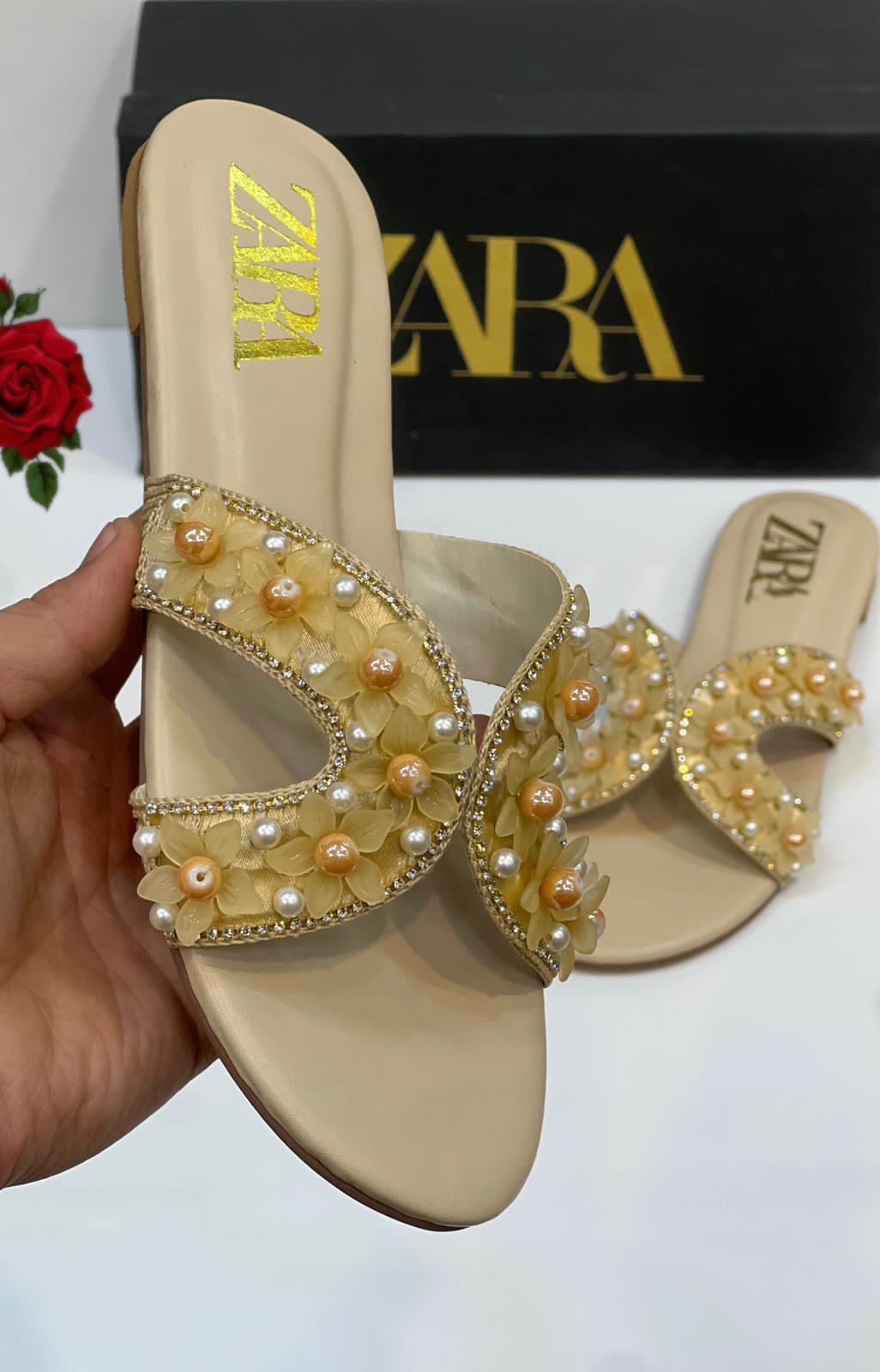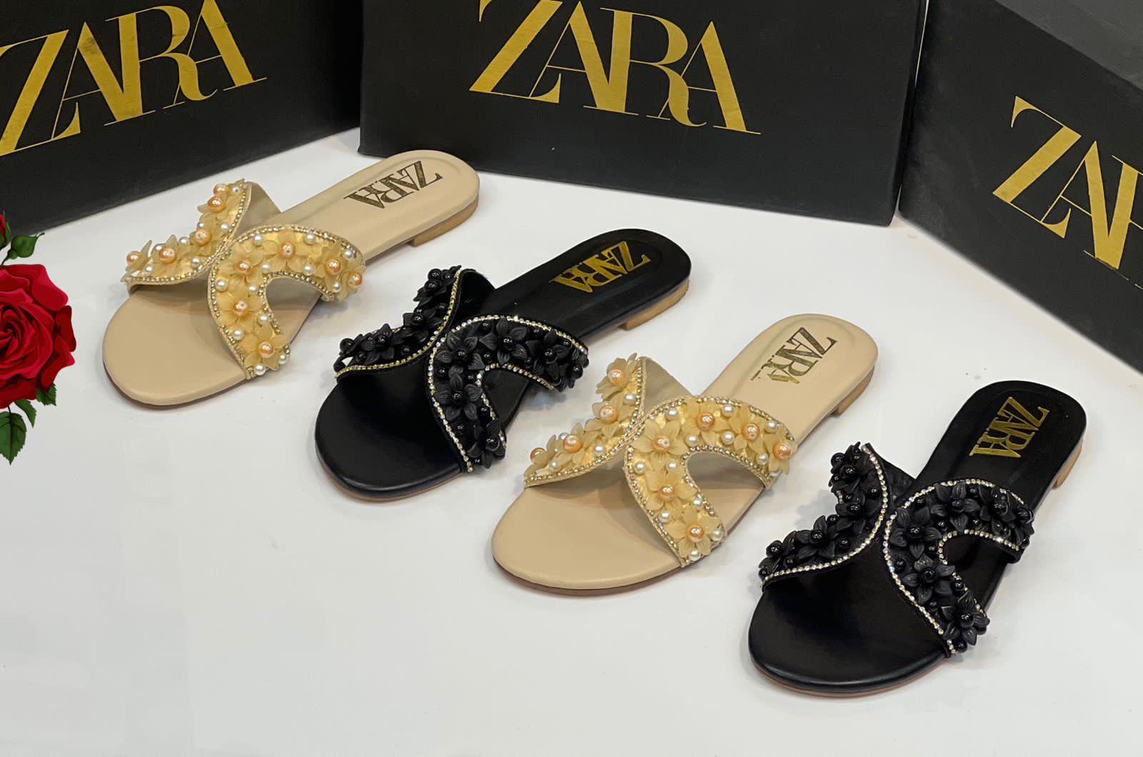 Step into effortless elegance with these chic flat sandals, featuring intricate floral appliqués, shimmering pearl accents, and a comfortable cross-strap design perfect for sun-drenched days and breezy evenings.