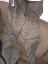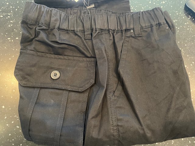 This is my fourth colour of these. They are super comfortable and easy to look after. The stitching isn’t perfect but they are very functional. These are the khaki green. The yellow pair are more like a brown/green colour. They come out really well in the wash. The waist band is elasticated so has a relaxed fit which is very comfortable if you have ibs or similar.