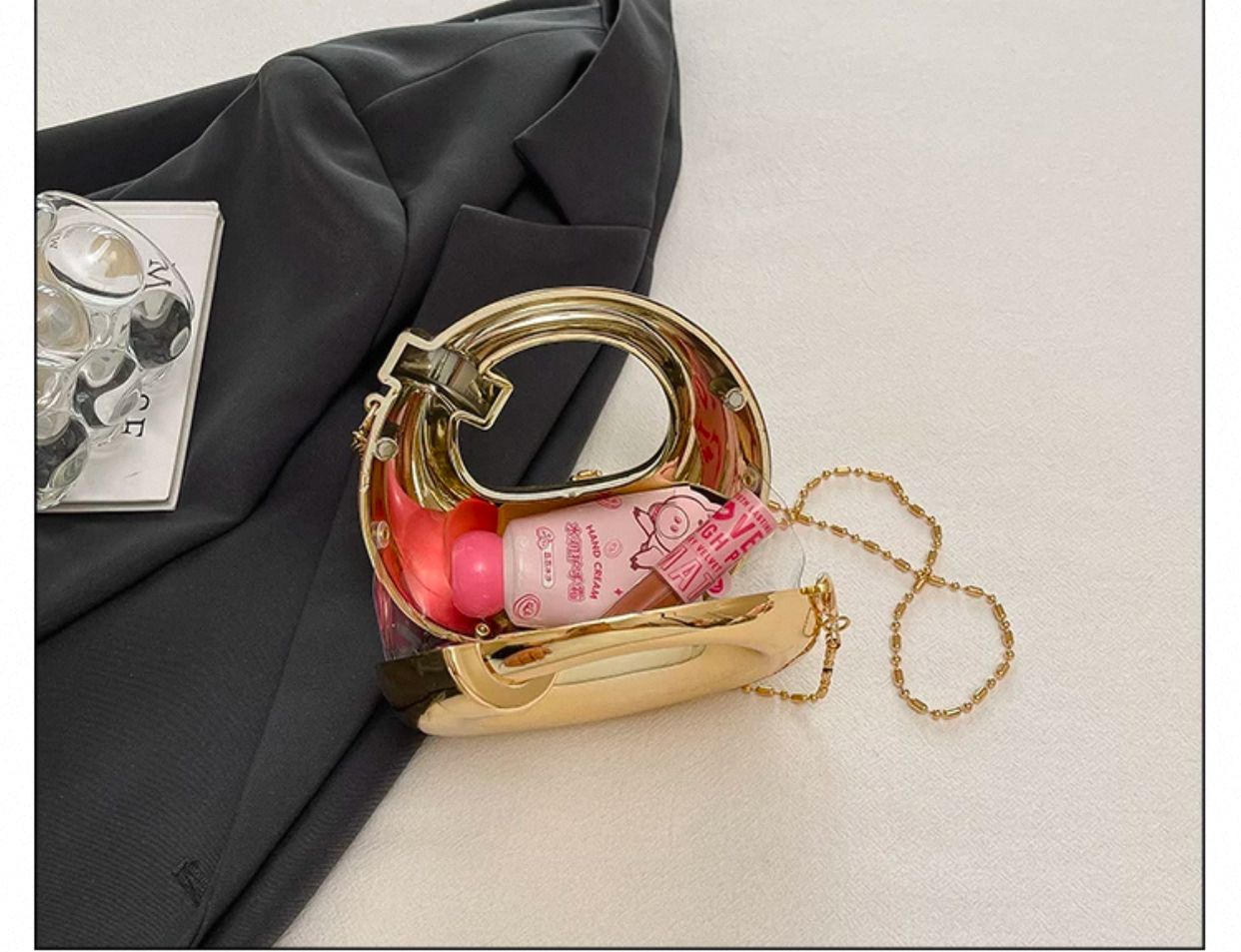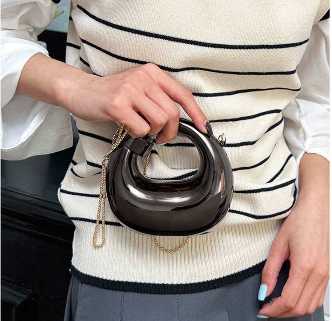 The silhouette of this bag is inspired by modern minimalism and futuristic architecture. The hollowed-out center serves as an integrated handle, while the rounded, pebble-like edges provide a comfortable grip. Whether you are attending a high-profile gala, a chic cocktail party, or an edgy gallery opening, this bag acts as the ultimate conversation starter.