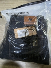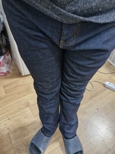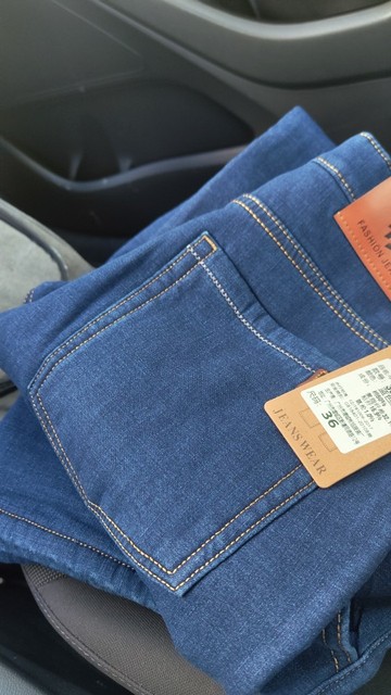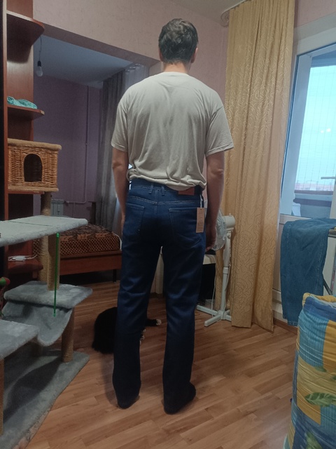 Delivery to Pyaterochka Postamat in 16 days, thick, soft, elastic pants, not tight and not wide, in short, liked them even though the fabric is not classic denim, they look like thick trousers, size 34 for height 173, waist 90 is fine, bought during the November sale for 1189 rubles.