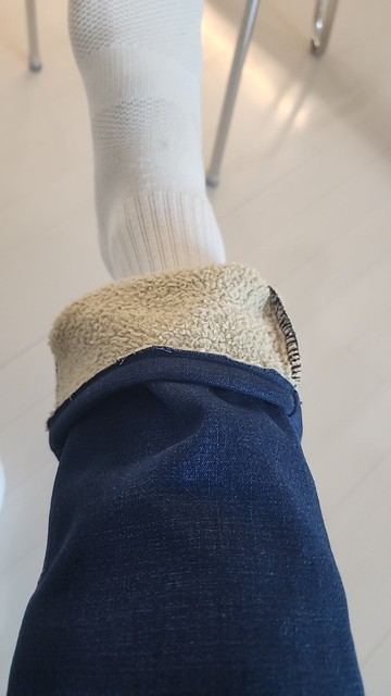 I liked the trousers, they really have a velour lining, soft stretch. The size in the waistband and waist fits well. Disadvantages: flimsy zipper on the cuff and the trousers are tapered at the bottom, meaning narrow rather than straight. Overall, I’m satisfied with the trousers.