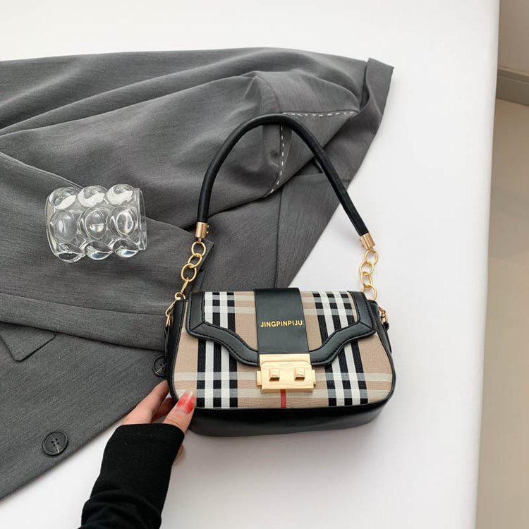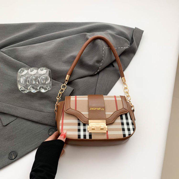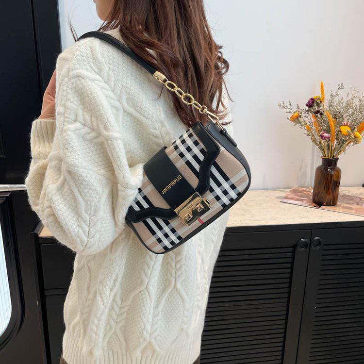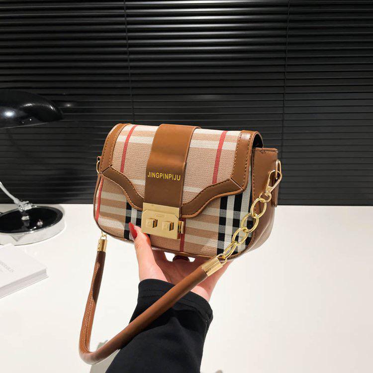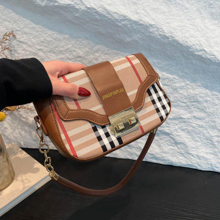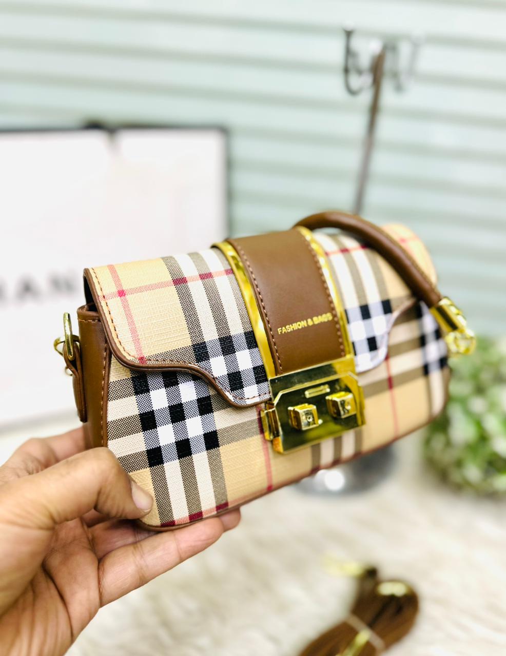 Elevate your accessory game with this sophisticated crossbody bag. Featuring a timeless checkered print and a striking gold-tone clasp, this bag blends classic style with modern functionality. Perfect for transitioning from daytime errands to evening outings with effortless elegance.