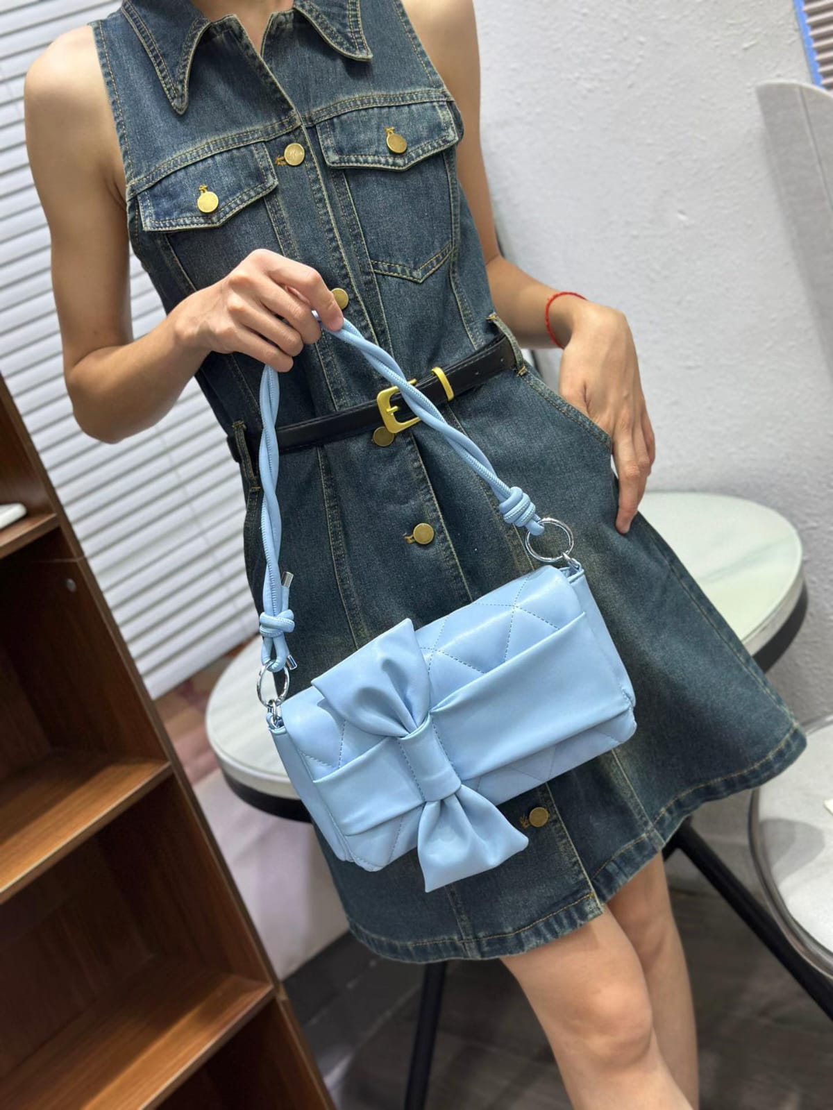 Quilted Bow-Accent Shoulder Bag with Braided Strap