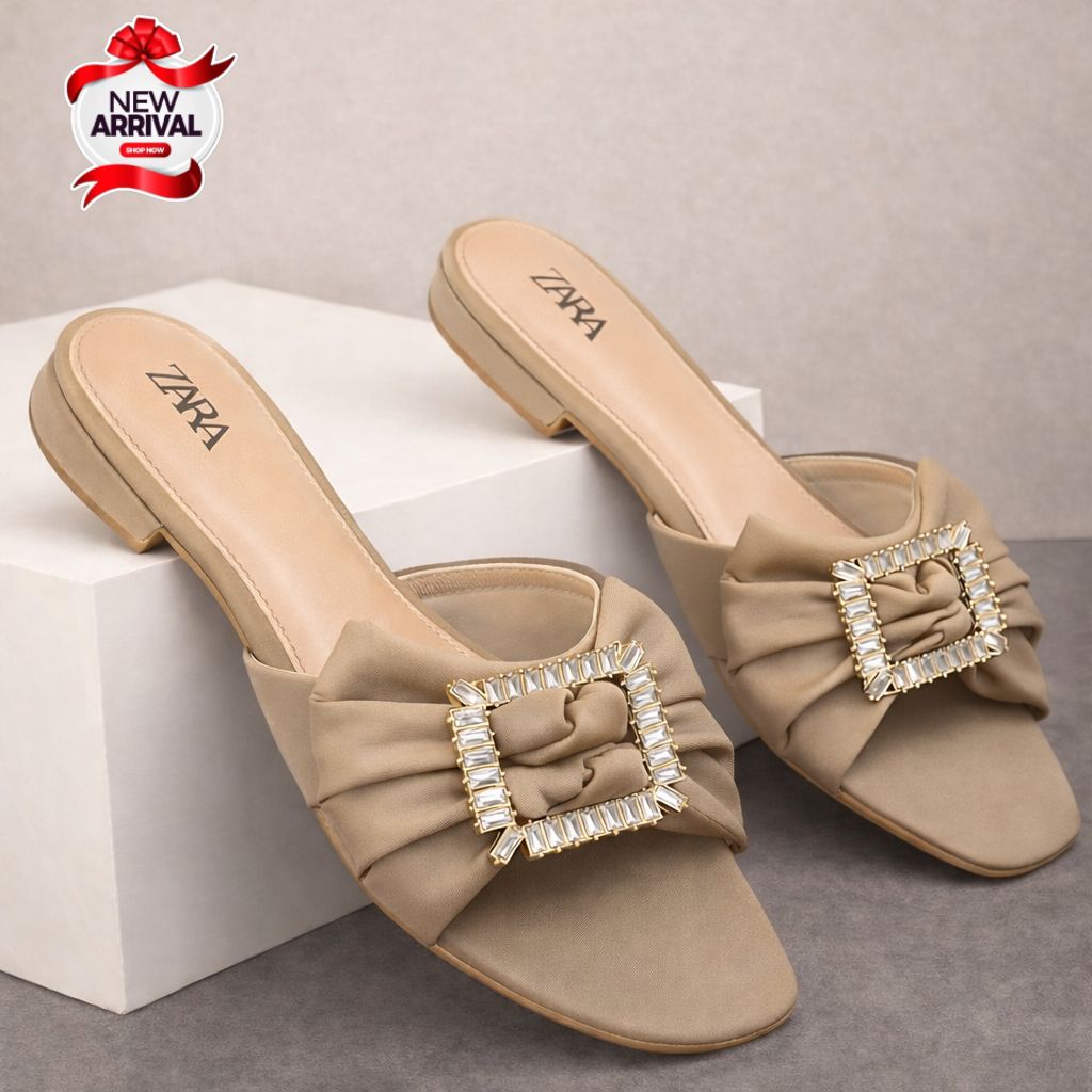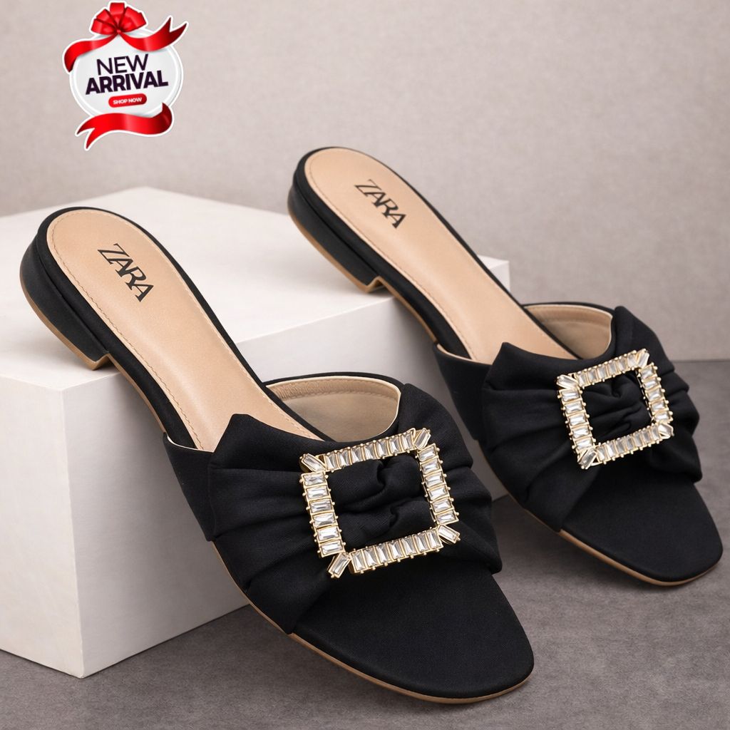 Step into elegance with our Radiant Sunburst Jewel Satin Slides, the perfect blend of high-fashion aesthetics and daily-wear comfort. These sophisticated flats are crafted from a premium satin fabric that offers a deep, luxurious luster and a soft touch against the skin. The centerpiece is an intricate, multi-colored sunburst jewel ornament that catches the light beautifully, making these slides an ideal choice for both festive occasions and elevating your casual daytime look. Designed with a focus on ease, they feature a low, gold-accented block heel that provides just the right amount of lift while ensuring stability for all-day wear. The square-toe silhouette adds a modern, on-trend touch, while the padded footbed offers exceptional support. Whether you are attending a garden party or running errands in style, these slides deliver a polished finish to any ensemble.
