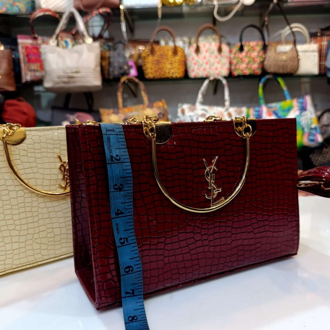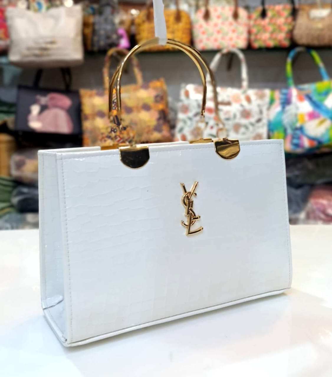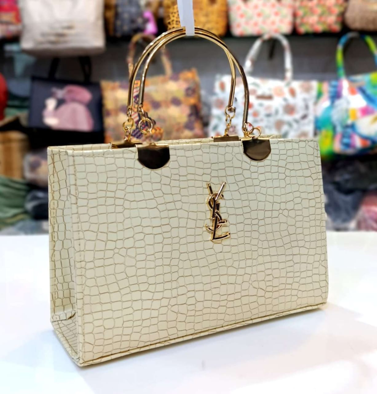 Step into the spotlight with our Structured Faux Croc-Embossed Handbag, a piece where classic sophistication meets bold, contemporary design. This versatile accessory is crafted for the discerning individual who appreciates both aesthetic beauty and practical functionality. Its striking profile and luxurious texture make it the perfect centerpiece for any outfit, whether you’re heading to a business meeting or an exclusive evening event.