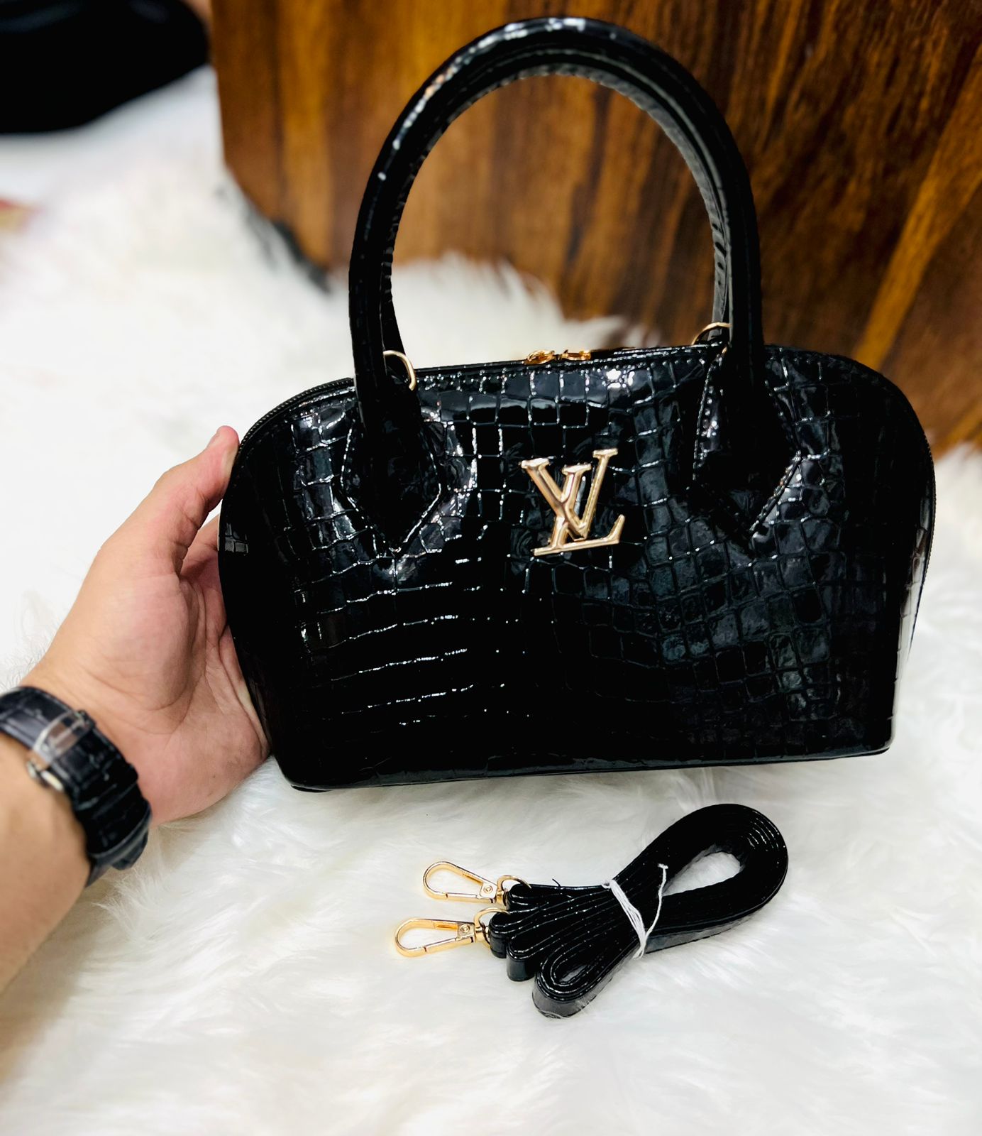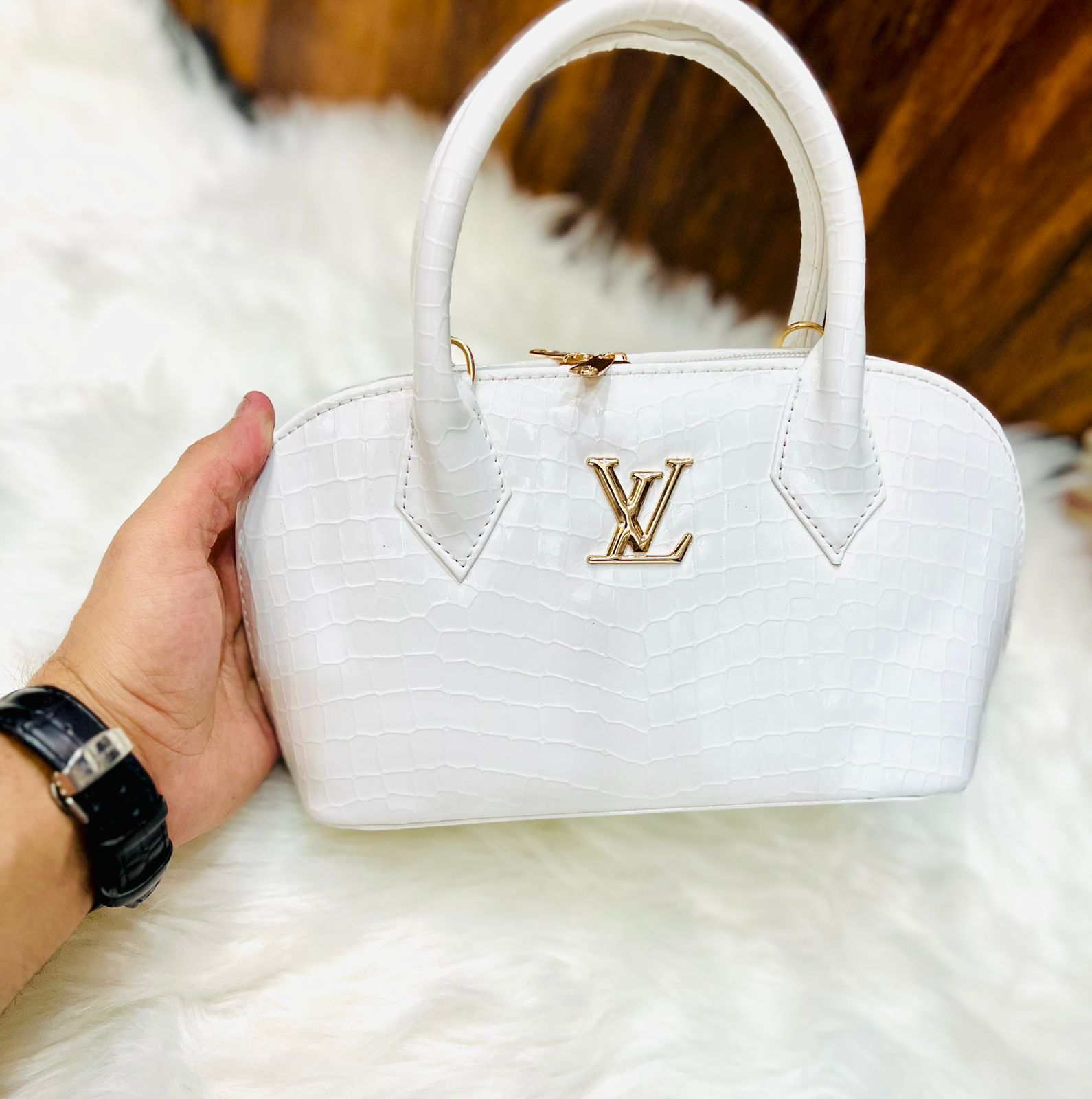 Available in two distinct finishes, this collection caters to every personality. Choose the classic monogram print for a heritage-inspired look that never goes out of style, or opt for the pristine white croc-embossed texture for a bold, contemporary statement. The arched “bowler” silhouette provides a spacious interior without appearing bulky, maintaining a sleek profile that tucks comfortably under the arm or sits elegantly on a tabletop.
