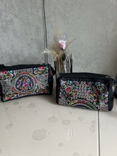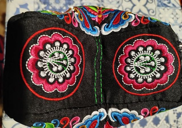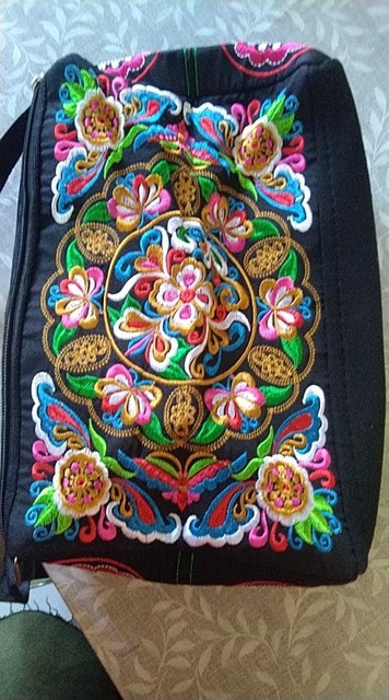 very beautiful. birthday gift. Used as a cosmetic bag. The embroidery is very well done and of good size.
