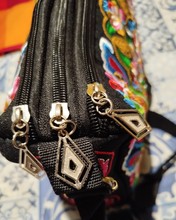The bag has three zips who are very comfortable to find things. The embroidery is very beautiful. The price is fantastic. Thanks to the seller